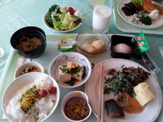 JR九州のビジネスパックで申し込んだため、旅費を差し引くと、2千円弱で、ツインの朝食バイキングに泊れました。部屋は12階の1号室で、1201とすると、奥さんの誕生日12月1日で、非常にご縁があるなと思いました。朝食を頂いた13階からの眺望は素的で、バイキングの品数を多く、非常に満足しました。