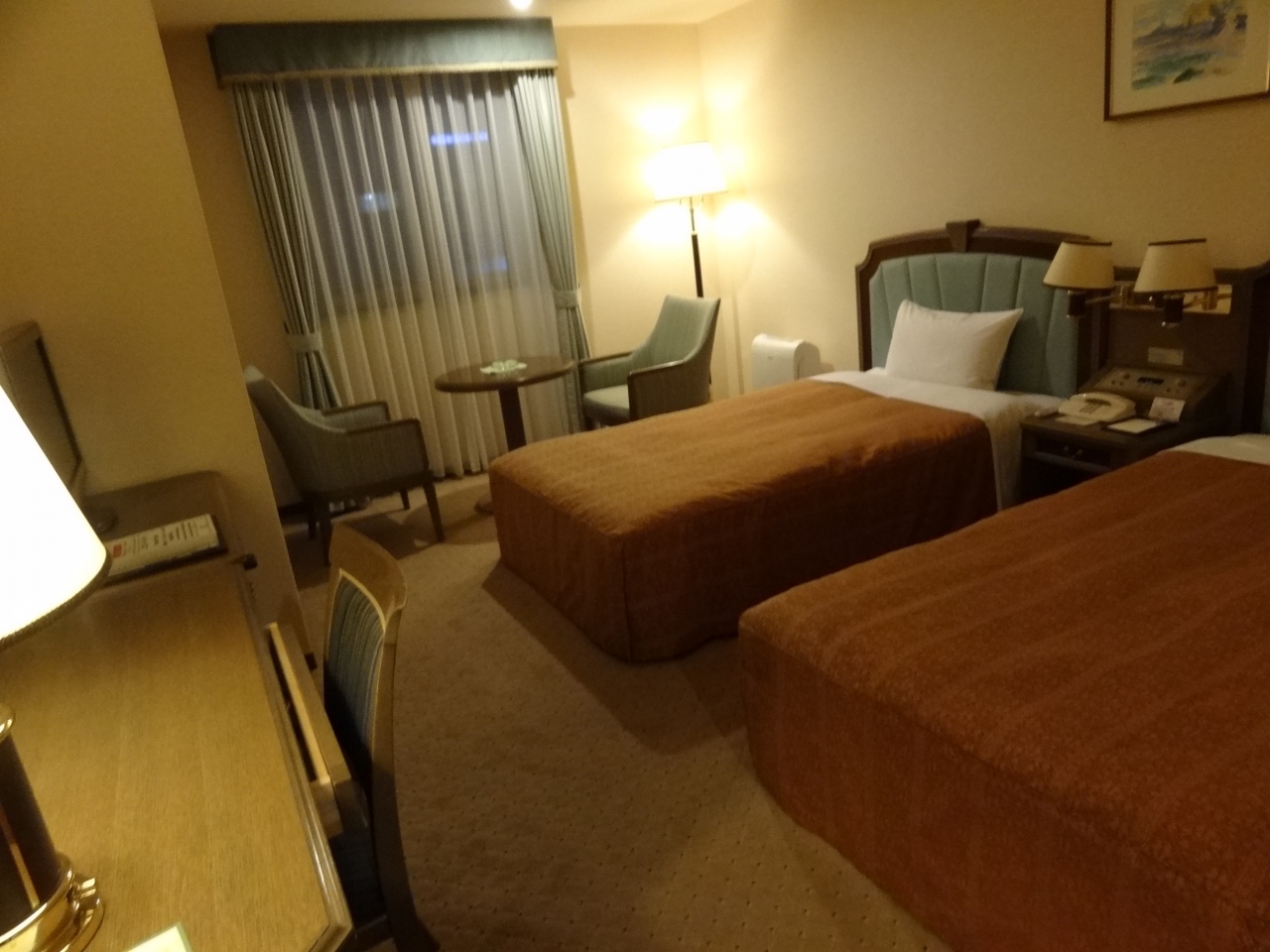 ツインルーム401号室に一人で宿泊(予約はシングルでしてました)、北海道大学が窓から見える部屋。部屋自体は普通の広さですが、天井が高いのでゆとりを感じます。ブラウン・ベージュ・グリーンを基調にコーディネートされた部屋でとてもくつろげました。一番良かったのはバスルーム、広くて足を伸ばせて入れる大きなバスタブ!素晴らしい。