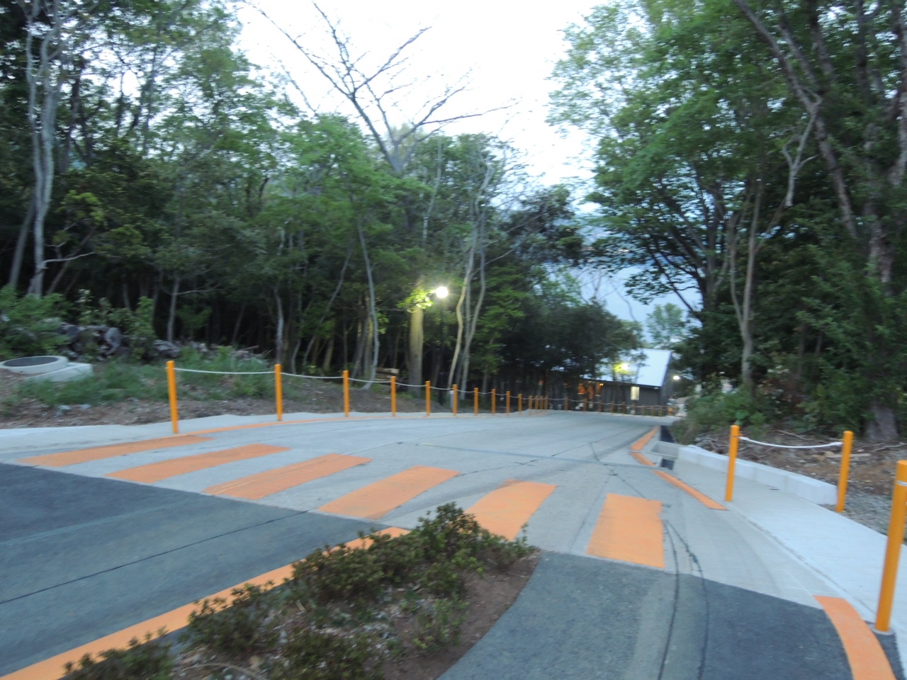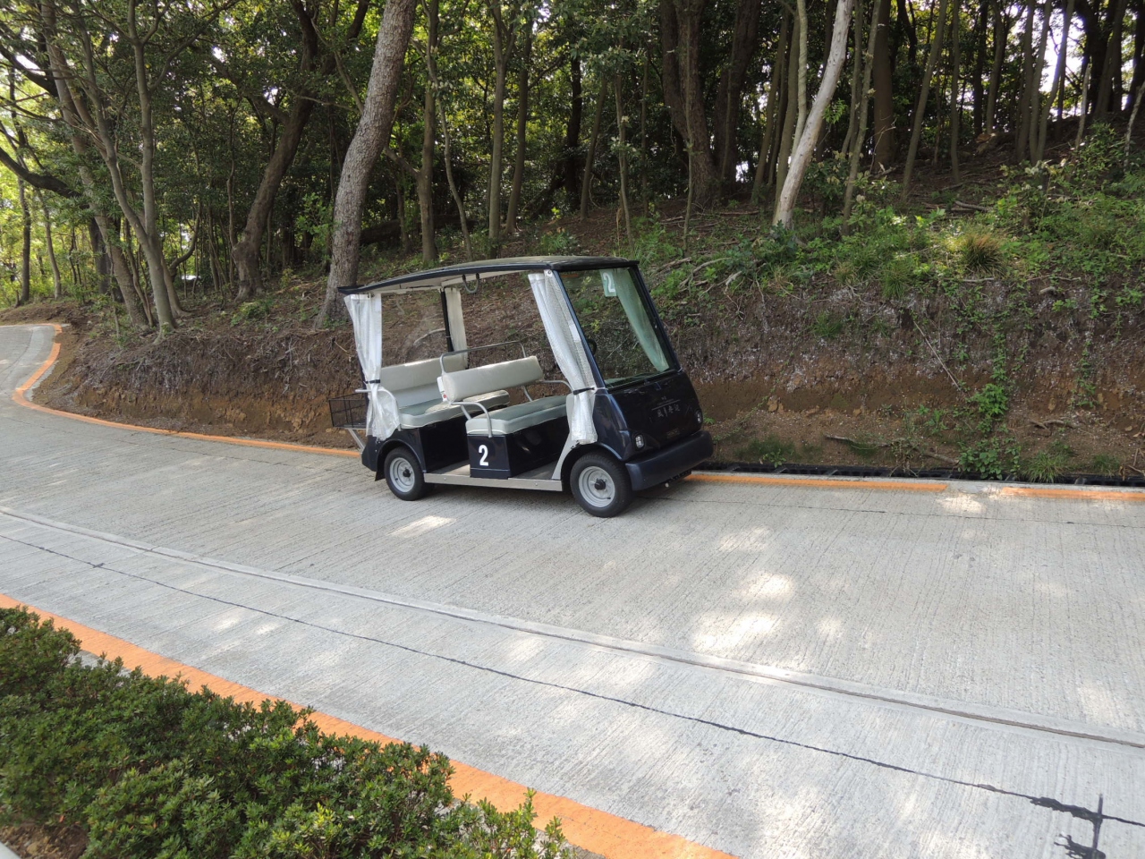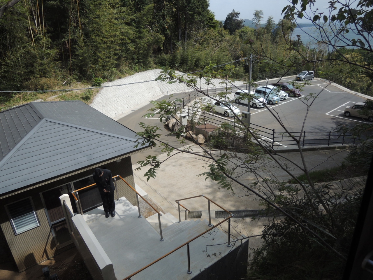 4万平方メートルの敷地とか言われてもピンとこないが、駐車場に車を置いて先ずモノレールで移動!といっても4人が限界です。かなりの角度を上がると下界が一望です。