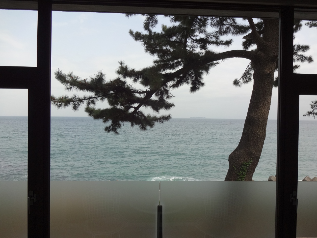 部屋からの眺望は相模湾が広がっていて文句なしです。ただし、目の前を熱海ビーチラインがありクルマの騒音が気になる方がいるかも知れません。部屋からは道路やクルマは目隠しのスモークパネルで座っている角度では見えません。当然あちらからも見えない。