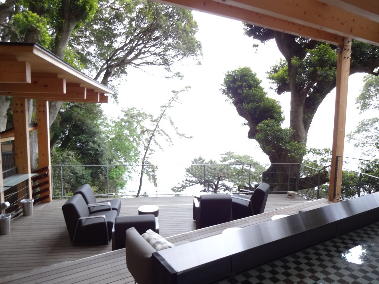 ここの特徴は歴史的な南葵文庫の建物を一部利用していること。温泉はかなりの傾斜地に2箇所あって、男女は日替わりの入れ替え制(チェックイン日と翌朝の入替)で蓬莱と共用。全8室はすべてオーシャンビュー。料理は魚介中心の美味しいフランス料理。
