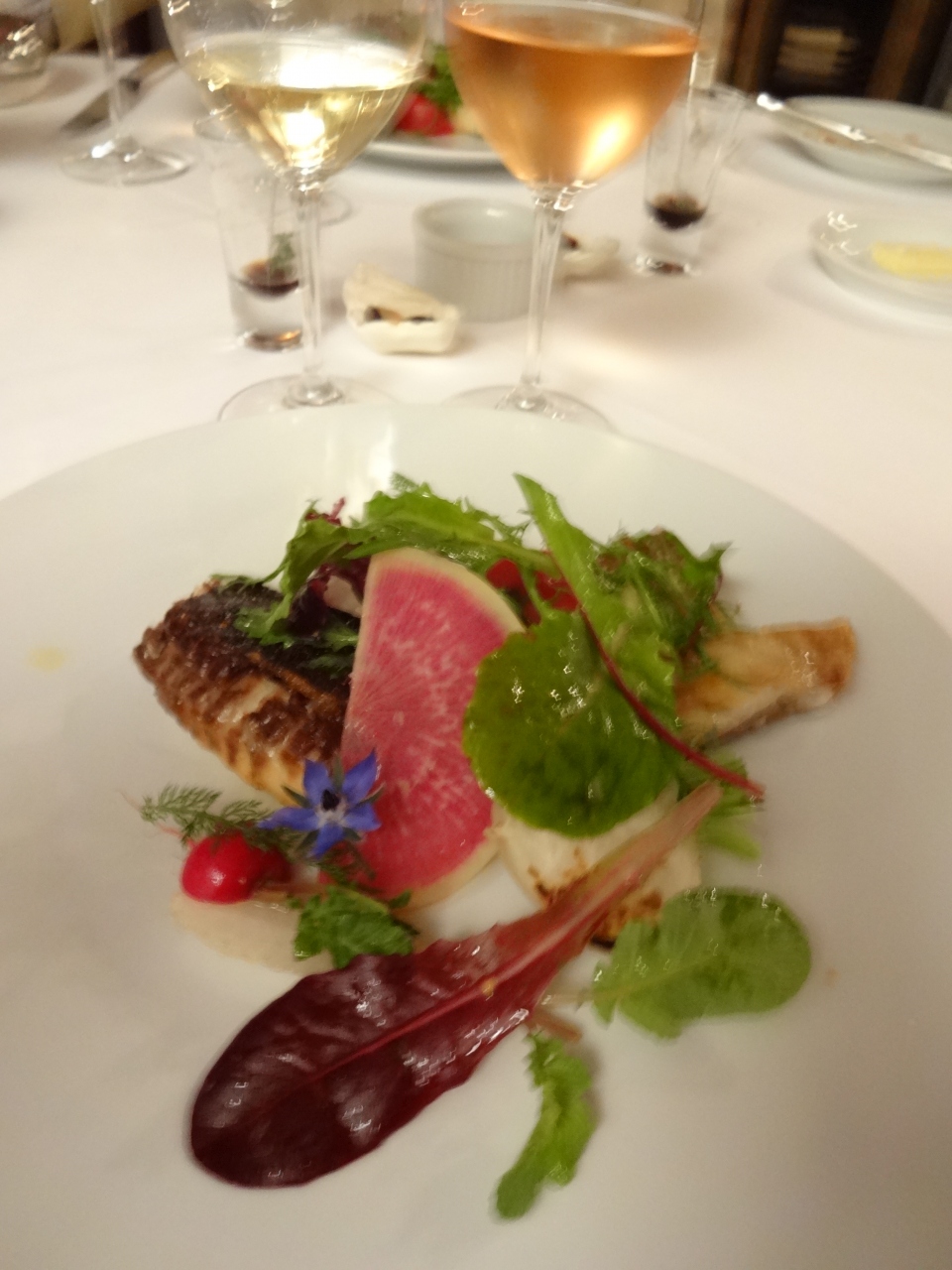 さて、肝心のお料理ですが、貝の盛り合わせ(ムール貝、ホタテ、ハマグリ)、手長エビの前菜、絶品濃厚なスープ ド ポアソン、イシ鯛のサラダ仕立て、デザート(結婚記念日でシェフから特製ミルフィーユも)、どれもむちゃくちゃ美味しかったです。是非ともワインは少し贅沢してください。