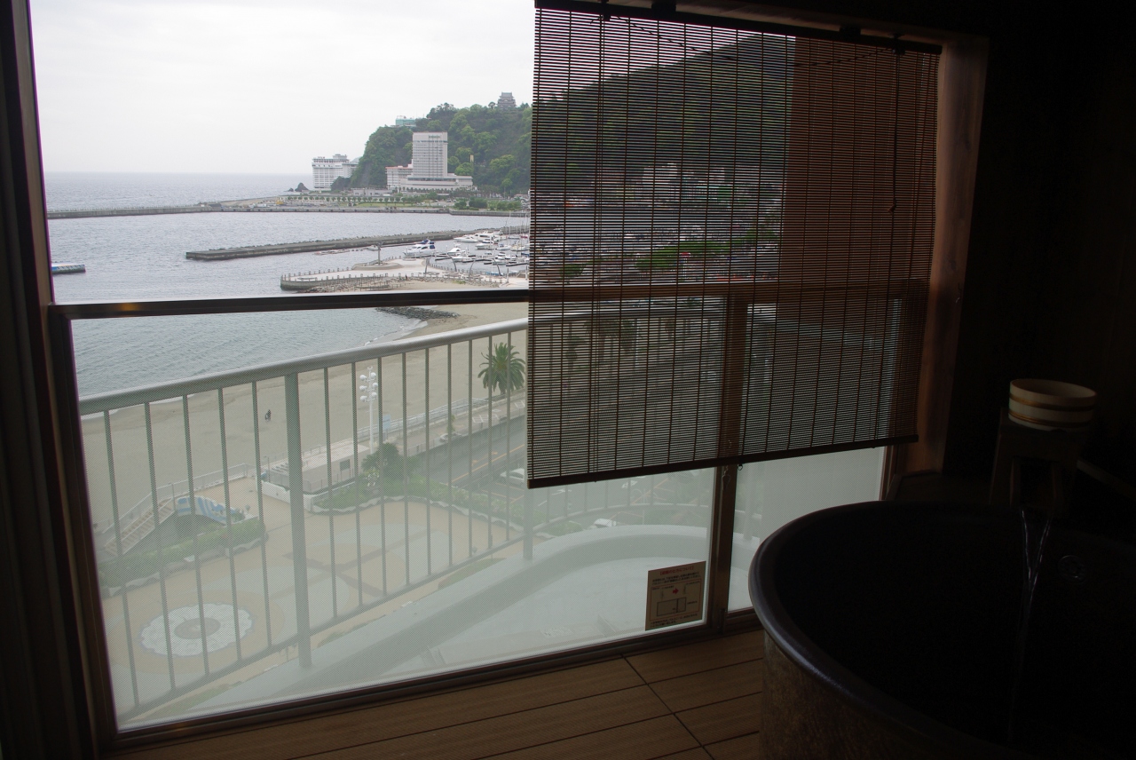 部屋の露天風呂は温泉ではありませんが、それでも熱海の海を眺めながらの入浴は気分がいいものです。