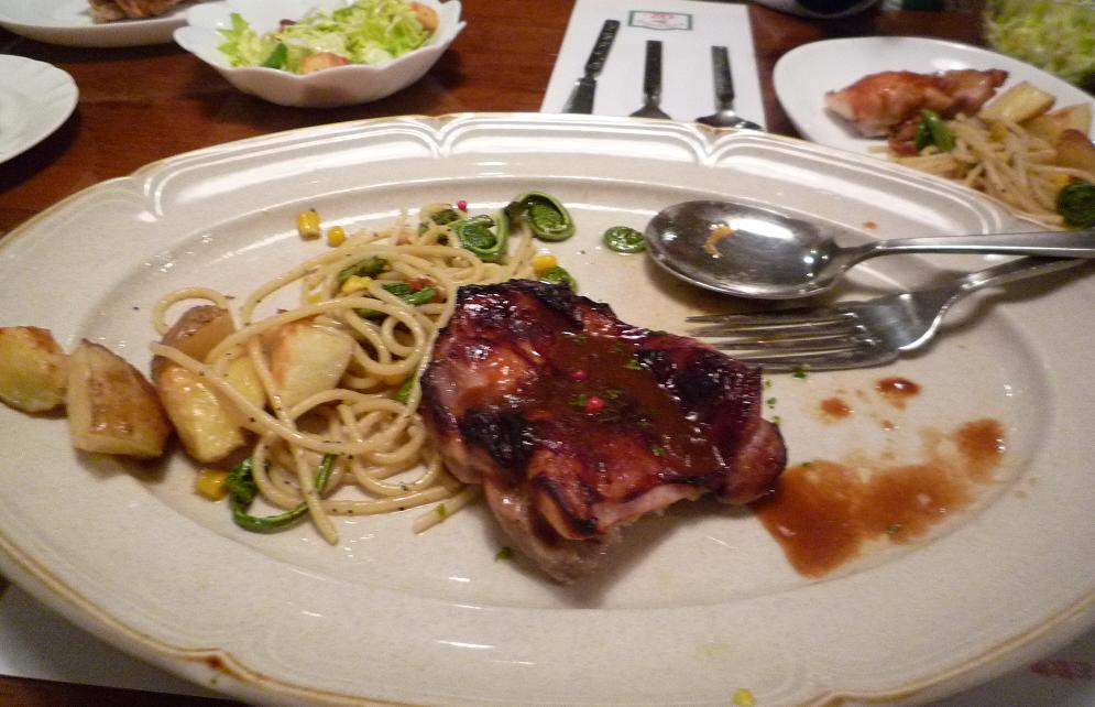料理のメインは、家族分をドーンとまとめて大皿に乗って来ました。