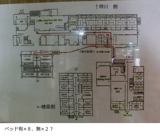 風呂:本館と共通。温泉ではないが、標高2000m余の沢から引いた水とのこと。