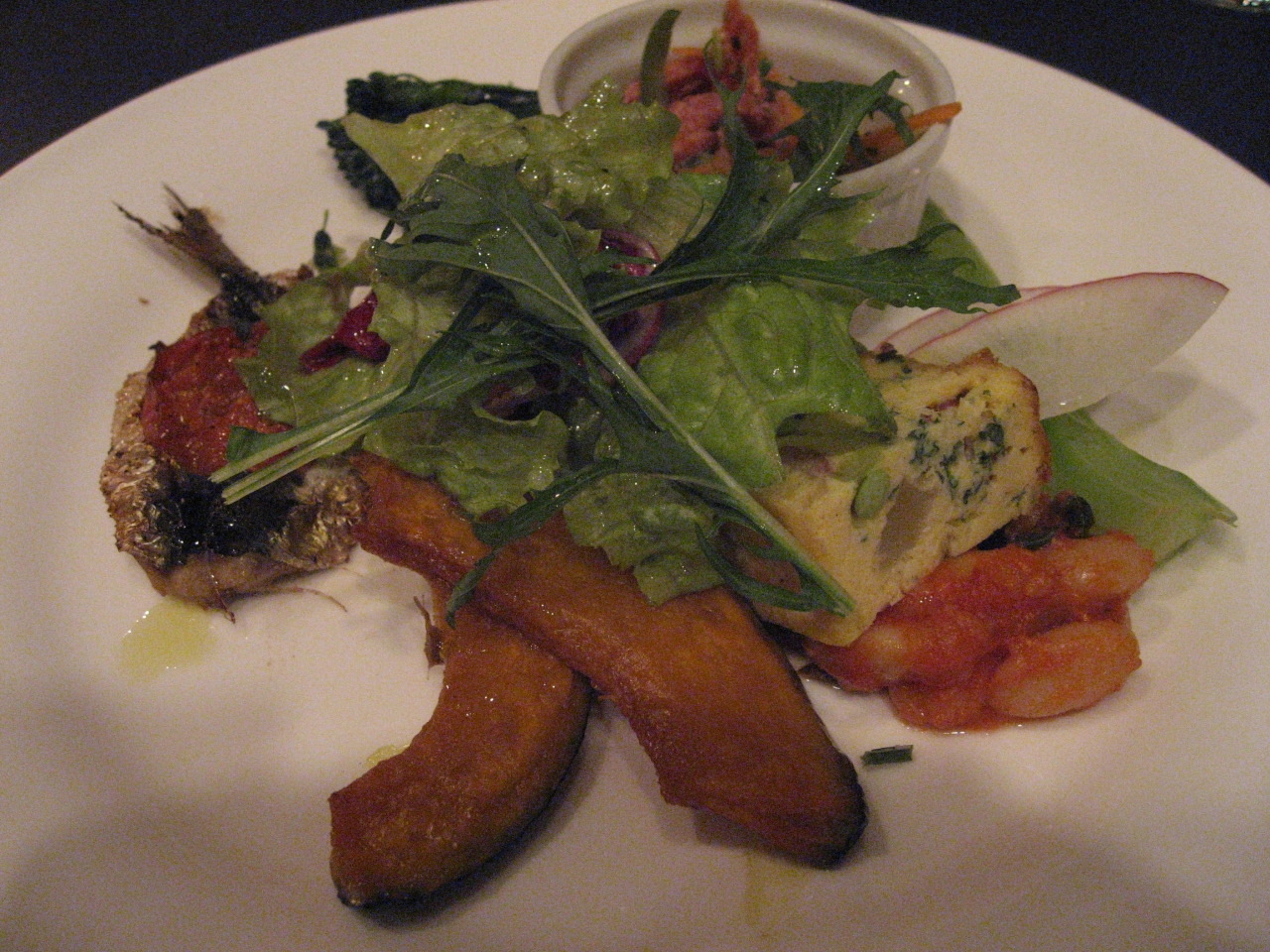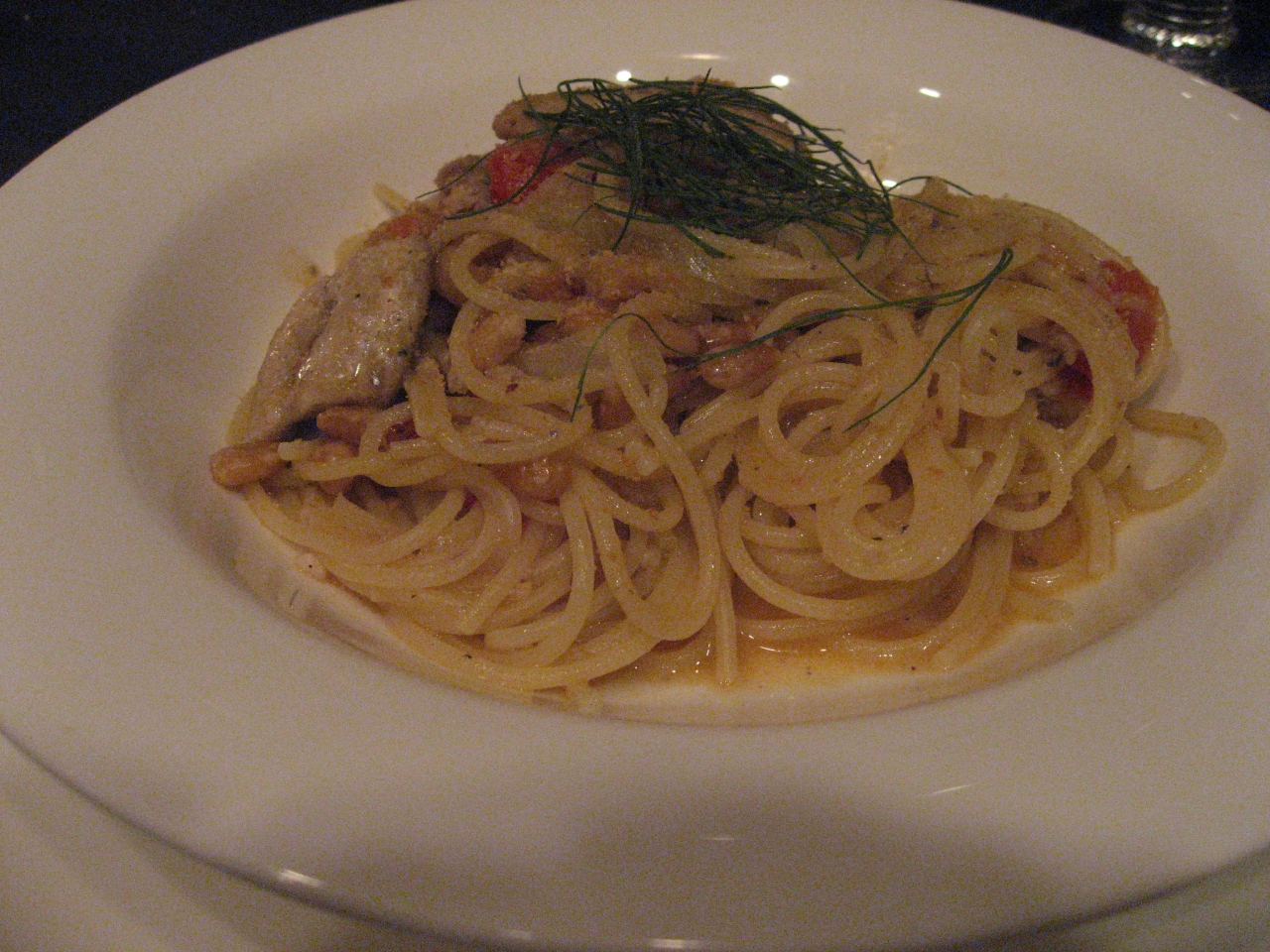 前菜、パスタ、メインの肉料理、メインの魚料理、焼きたてパン、