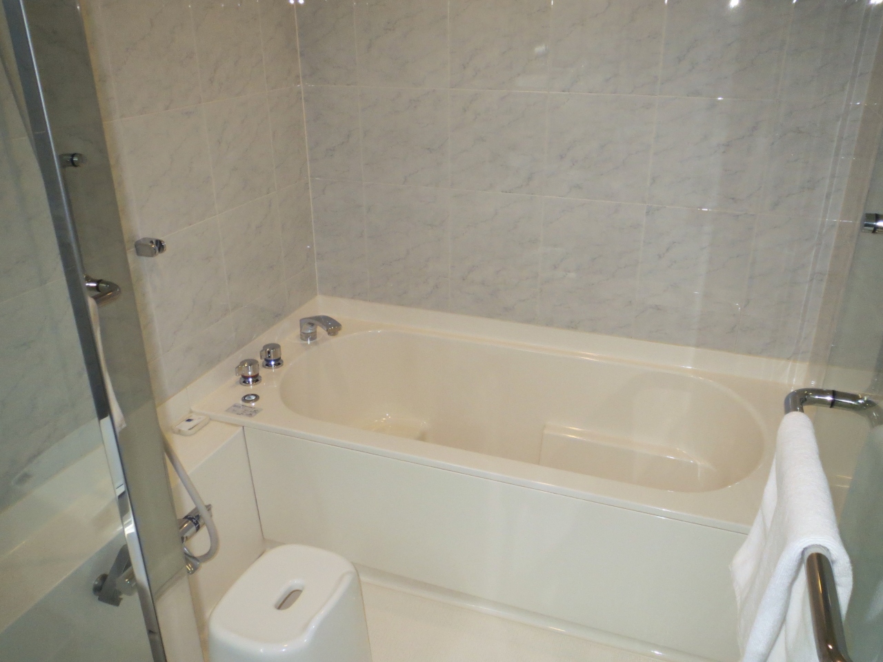 広々としたバスルームが印象的な、かなり広いお部屋でした。