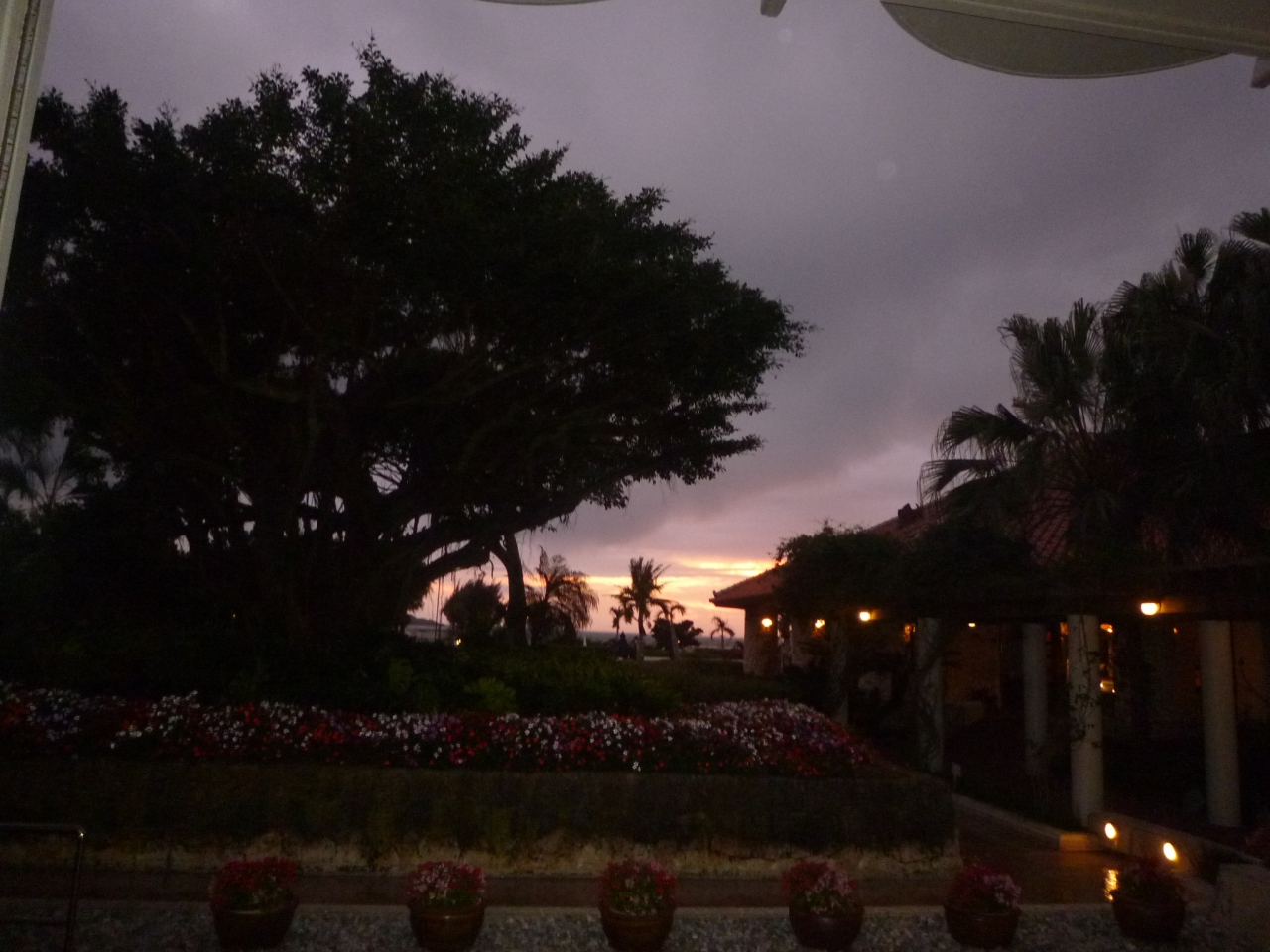 夕方ホテルに着いたときにちょうどサンセットで部屋から良い景色が見えました。ホテル敷地内にはたくさんのお花や木が植えてあります。私は朝早起きして遊歩道を散歩してきました。ツアーで行った際に組み込まれていたホテルなので一泊当たりの値段は分かりません。