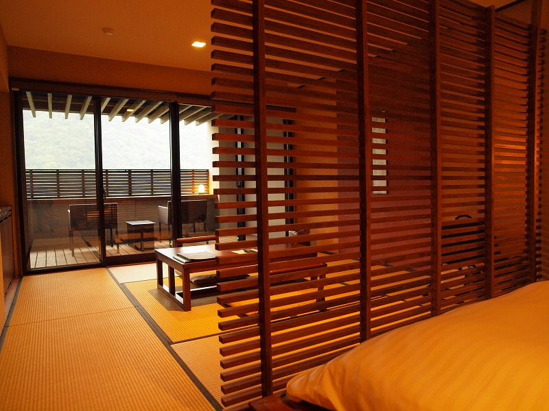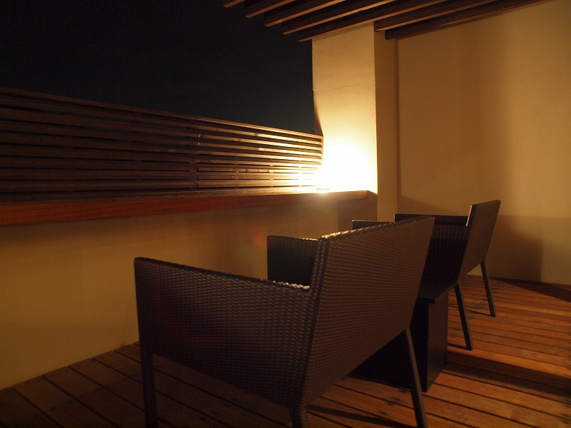 露天風呂とアウターリビングがついているので、ゆっくり温泉を楽しむことができました。