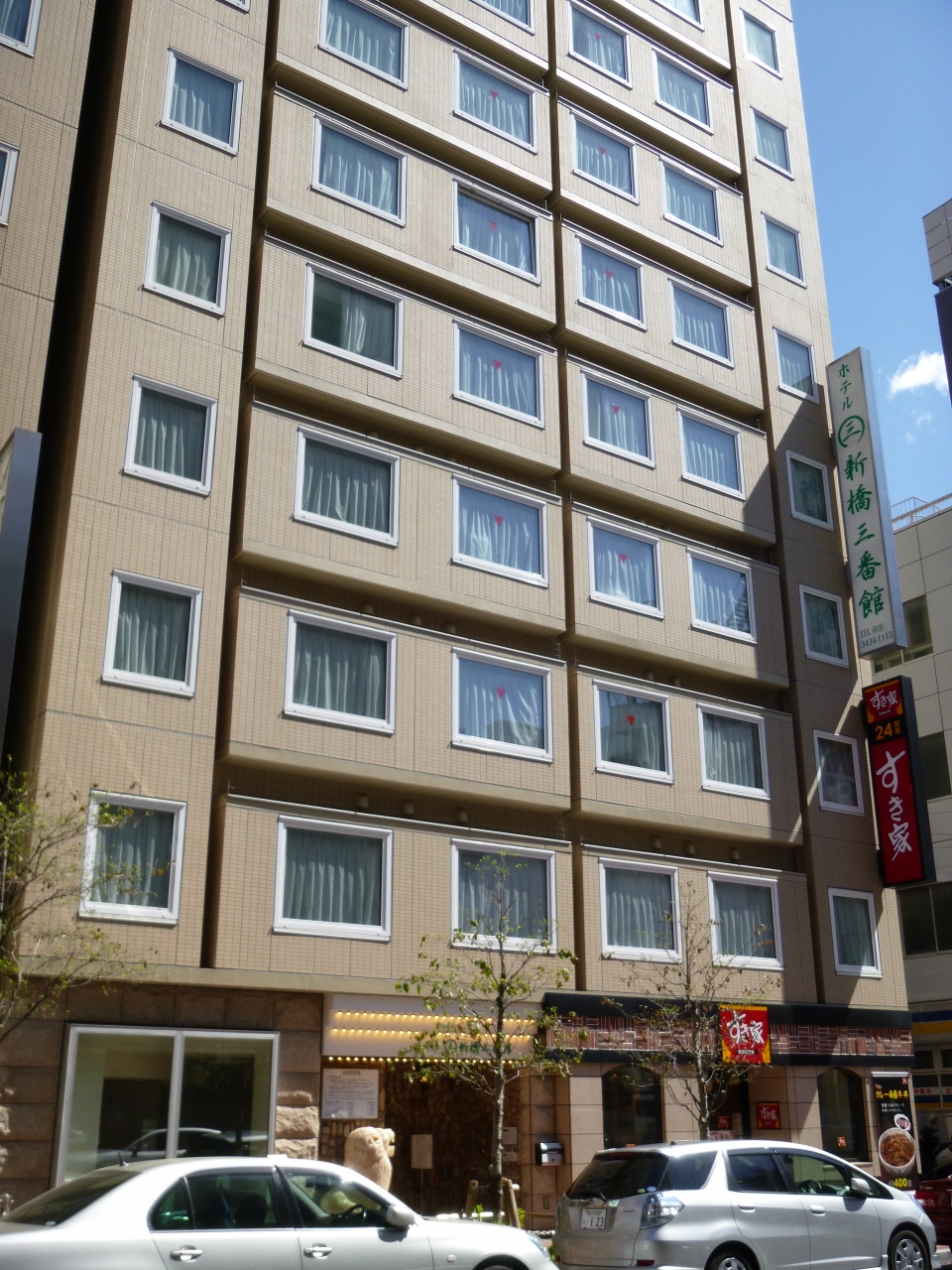 JR新橋駅から徒歩3分にあるビジネシホテルです。比較的新しい建物で 部屋は狭いけど綺麗で清掃が行き届いていて清潔でした。ミニキッチンや洗濯機などの設備をコンパクトにまとめていて、長く宿泊する人には便利です。また携帯の充電器もいろんな機種に対応するものがついていて便利でした。12階にはこじんまりした大浴場(というより家族風呂)があり、露天風呂のベランダからは東京タワーも見えました。