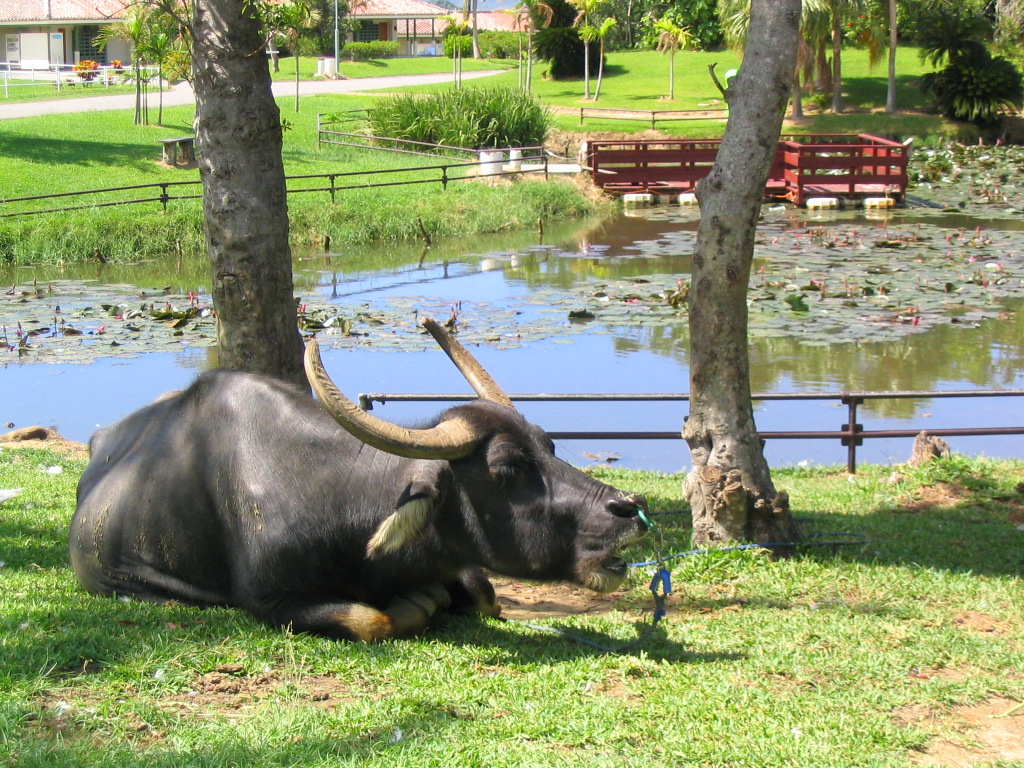クジャクが放し飼いになっていたり、池のほとりには水牛が繋がれていたりと、なかなか趣向を凝らしている様子がうかがえます。