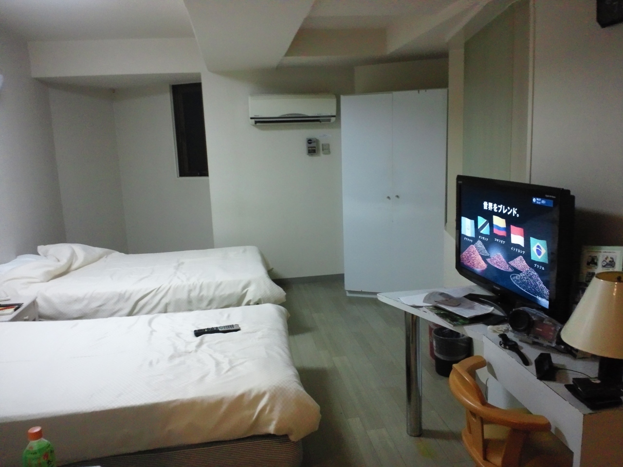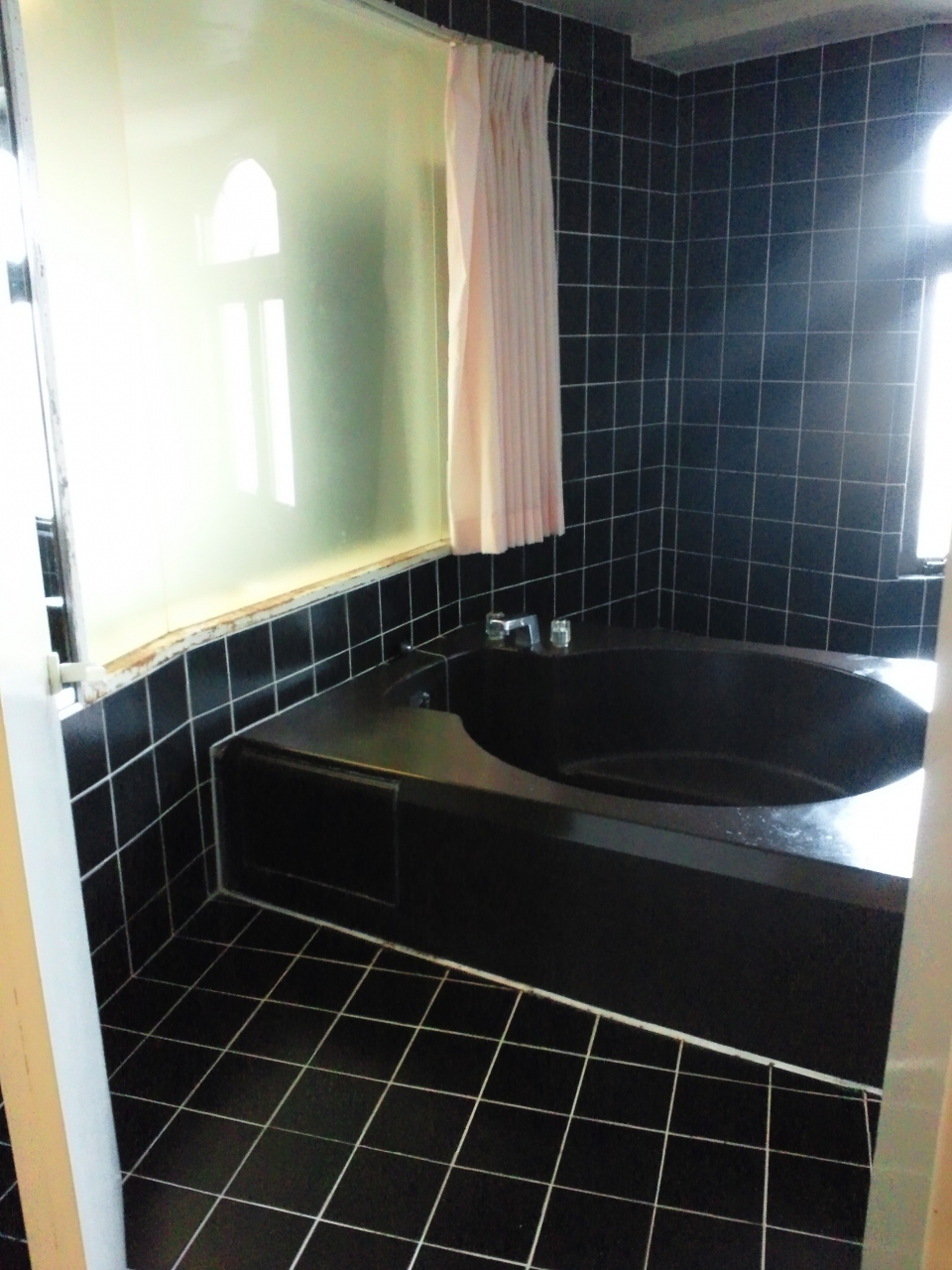なんでこんなに広くて安いのかなぁ〜と思ってたら、部屋に入ってやっと理解できました。多分このホテルの前身はカップル専用のホテルだったのでしょう、浴室がめちゃくちゃ広い!まぁ客室自体も十分な広さもあったし、トイレも別だったので文句はありませんが・・・。おかげで最終日にダイビング器材を持ち帰ったときに、浴室でちゃんと洗えて、しかも干すスペースも十分確保できたので最高でした。