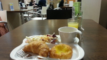 朝食は数種類のパンと、サラダ、スープ、ドリンクが無料。