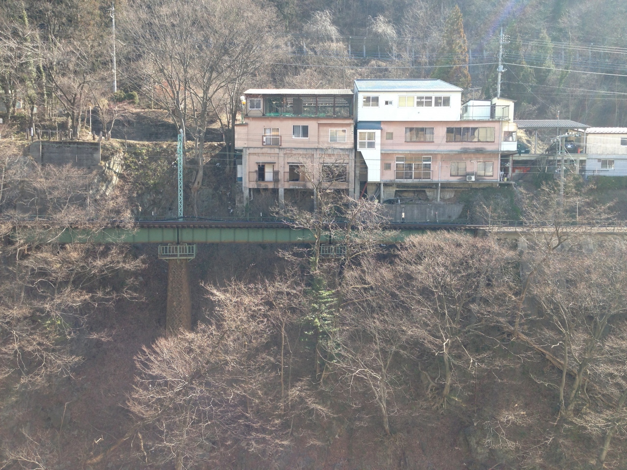 部屋の窓の外には、川がありその先に鉄道の線路が有ります。(タイミングが会えば、電車を見ながらの入浴が出来ますよ。向こうからも見えてますけどね!)
