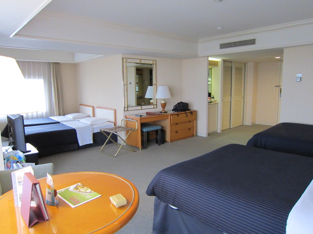 部屋に入ってみてびっくり。コーナーで景色がとてもすてきでした。右の窓から海が、左の窓からデイズニーリゾートが。値段がすごく安かったので全然期待せずに行きました。これぞサプライズですね。廊下やドアは少し古いけど、室内は新しくきれいでいごこちがよかったです。朝食もたくさんの種類があり満足でした。