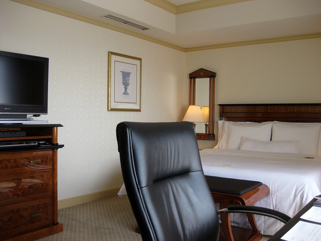 3回目の宿泊で、今回もスターウッドのキャンペーンを利用しての無料宿泊でした。スターウッドフロアの角部屋、ウェスティン・ゲストオフィスという部屋にアサインされました。館内・客室共に重厚な雰囲気、スタッフもテキパキと応対してくれますし、エグゼクティブクラブ・ラウンジも比較的広いスペースをとってあります。しかし、毎回思うことは、何かが物足りない…。その理由を考えてみましたが、やはり館内のどこも混み過ぎで、落ち着けない印象が残るからだと思います。例えばロビー階奥のラウンジでアフタヌーンティーを楽しんでいるときも、入口にはひっきりなしにお客さんが訪れていて常にバタバタしています。朝食の時間のビュッフェ・レストランの入り口には長い行列ができ、エグゼクティブクラブ・ラウンジのカクテルタイムも激しく混み、まったくもって席が足りない模様です。ゆっくり滞在したいと思ったら、ともかく平日が良いホテルなのだと思いました。週末は混んでいる上、楽しみにしているレストランでの食事も、料金も高くなって利用しづらいです。