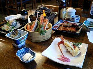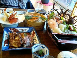1泊で、1名11350円で、伊勢えびの(お刺身、殻焼き、味噌汁、天麩羅)、金目煮つけ、