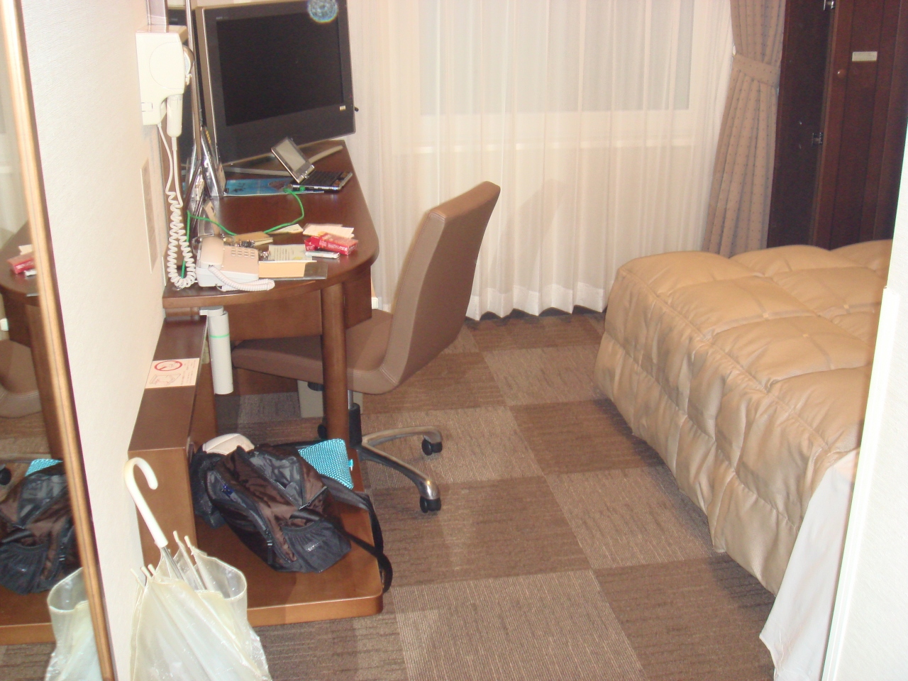 部屋は狭いがキレイ。他のルートインよりは若干広い気がした。