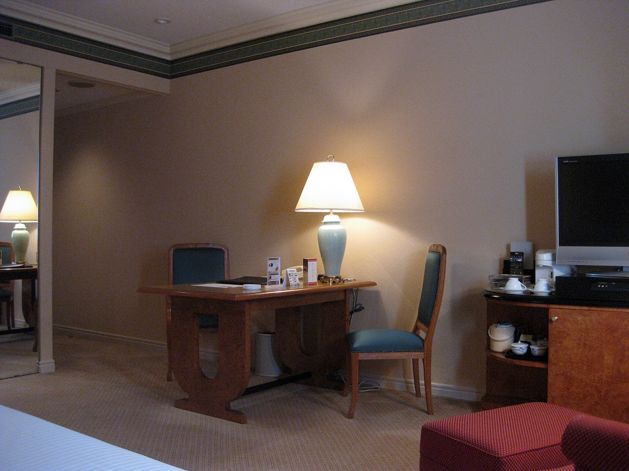 客室ドアを開けると正面がデスクとは、珍しい配置です
