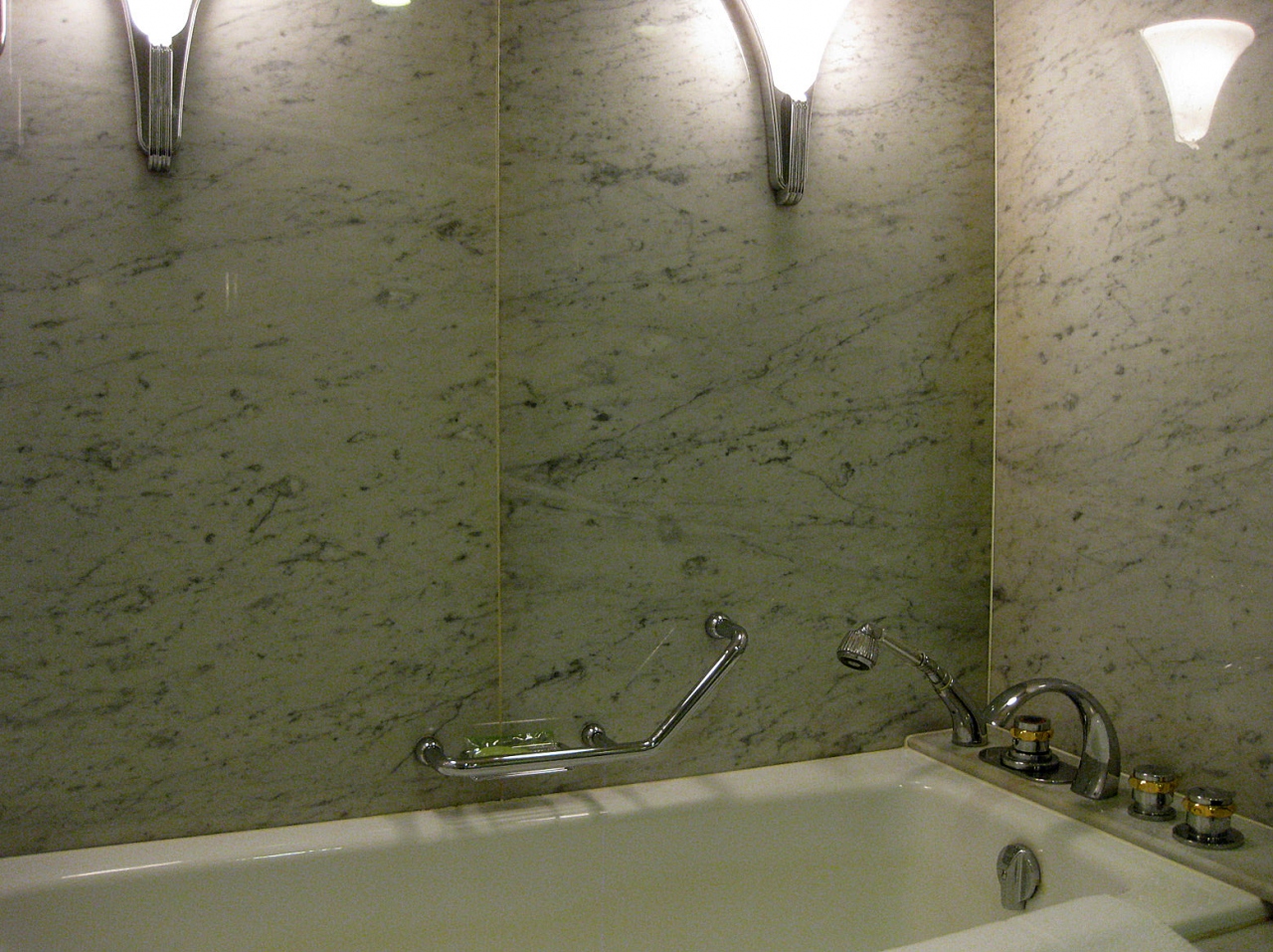 浴室も大きく、照明も豪華なのですが、経年劣化が…