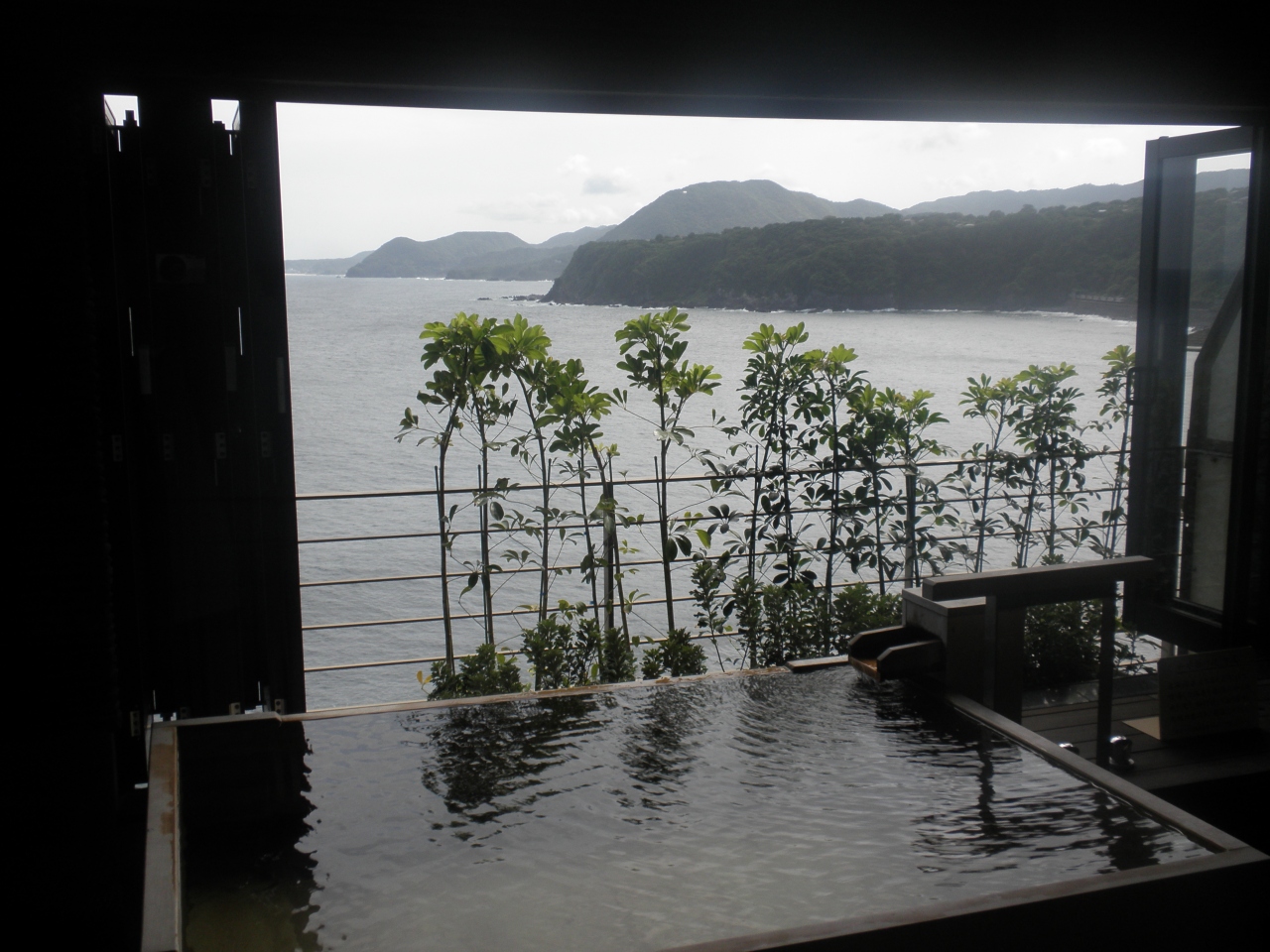 部屋の家具ひとつひとつがとてもオシャレで、窓から見える海とのコラボレーションは最高です。部屋にある温泉もガラス張りで、部屋からそのまま見えるのですが、目の前に広がる海とともに解放感にあふれ、感動しました。