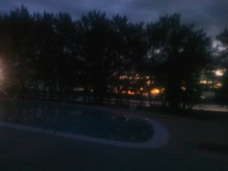 プール越しに木々の向こうにオレンジ色の夕焼けが見えて、素敵でした。