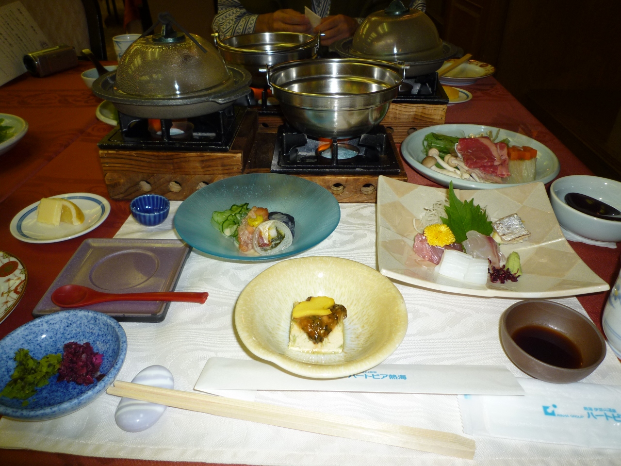元公共の宿で人気があるとのことで、どのような夕飯がいただけるか楽しみにしておりました。お客の目の前で行うあわびの酒蒸しが売りのようで、宿泊料金が安い割には気が利いていると思いました。個人的には、金目鯛の煮付けのほうが良かったのですが。でも、値段を考えると品数も多く、満足のいく夕飯をいただくことができました。