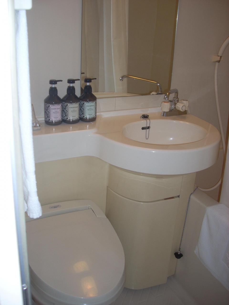 客室はごく普通のビジネスホテルの客室です。空調は独立ではないので、手動で入切が必要です。入口や廊下の天井が低く圧迫感があります。隣室などのドアの開閉音が気になります。