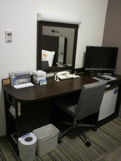 フロントにはパソコンが2台。新聞も無料で部屋に持っていけます。なかなかグッドなビジネスホテルなのでした。
