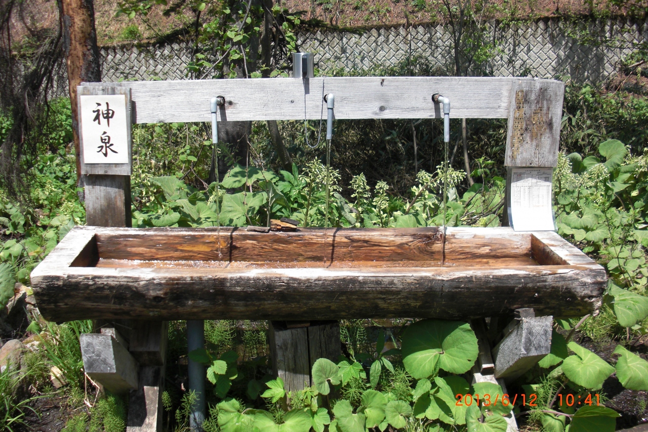 ホテルの敷地内に大雪山の湧水を汲める所があり誰でも利用できます。