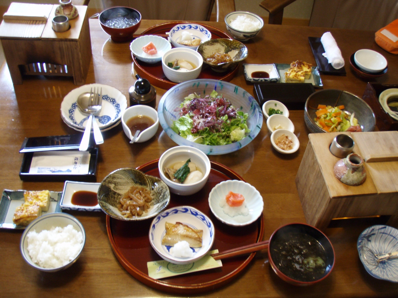 海が近いからかお刺身や魚料理(今回は鯛のカブト焼が出ました)