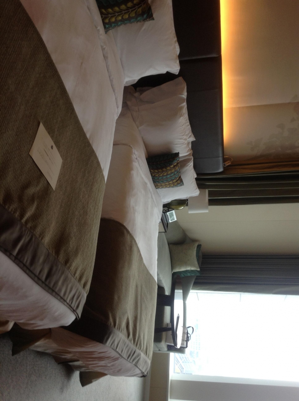 以前から憧れだったセントレジスが、お得な価格だったので、宿泊しました。まだ新しく、予想通り、とても綺麗で、上品でした。ロビーは、6階位にありますが、その横は、庭園になっていて、お洒落でした。部屋は、北側で、梅田辺りの見晴らしがよく、快適でした。お風呂もview bathでよかったです。3時頃check inしてシャワーを浴びたのですが、6時前に、ベッドメイクしてくれ、又、濡れた浴室の床を全部拭いてくれたので、驚きました。靴も夜出しておくと朝までに磨いてくれ、とてもサービスがよかったです。