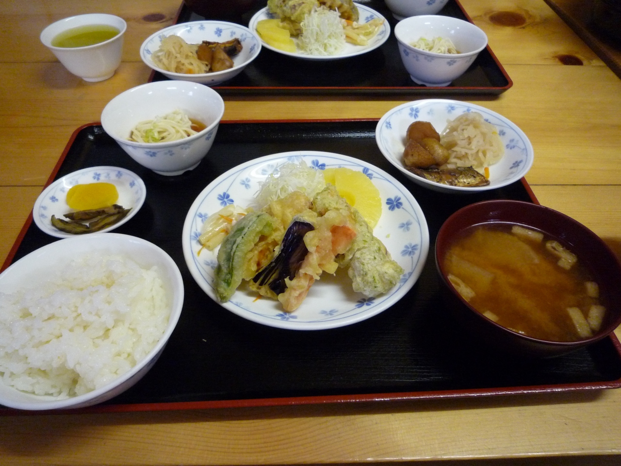 夕食:”天ぷら街道”と言われる小池氏運営の山小屋では”天ぷら”が
