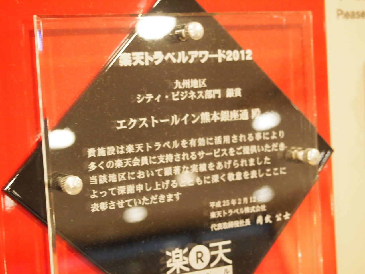 「楽天トラベルアワード2012 九州地区 シティ・ビジネス部門 銀賞」を受賞したビジネスホテル。