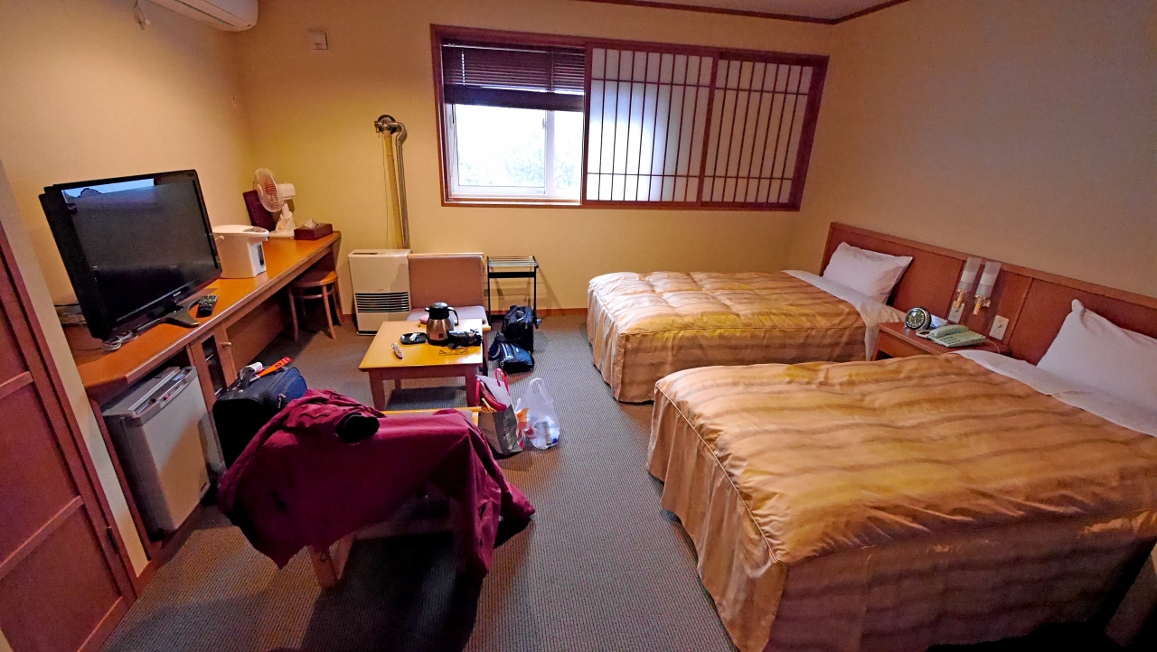 三隅川の中州にある.洪水は大丈夫なのかなとちょっと心配 部屋は洋室だが小さな段差のあるスペースがある.ツインのシングルユース 一泊2食付きで15550円と安い ... もっと見る