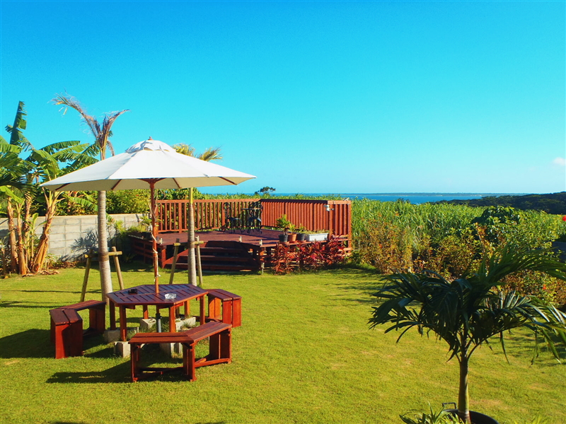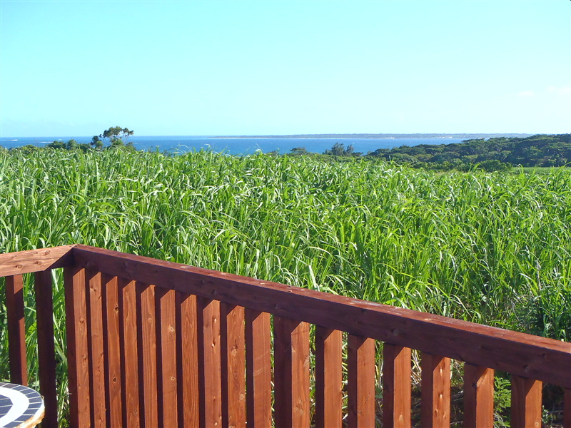ロケーションは、お庭からは、サトウキビ越しに海が見えます。石垣島に来たって感じがして、とても良いです。
