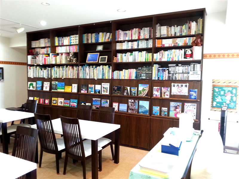 パブリックスペースには石垣島に関する本がいっぱいです。