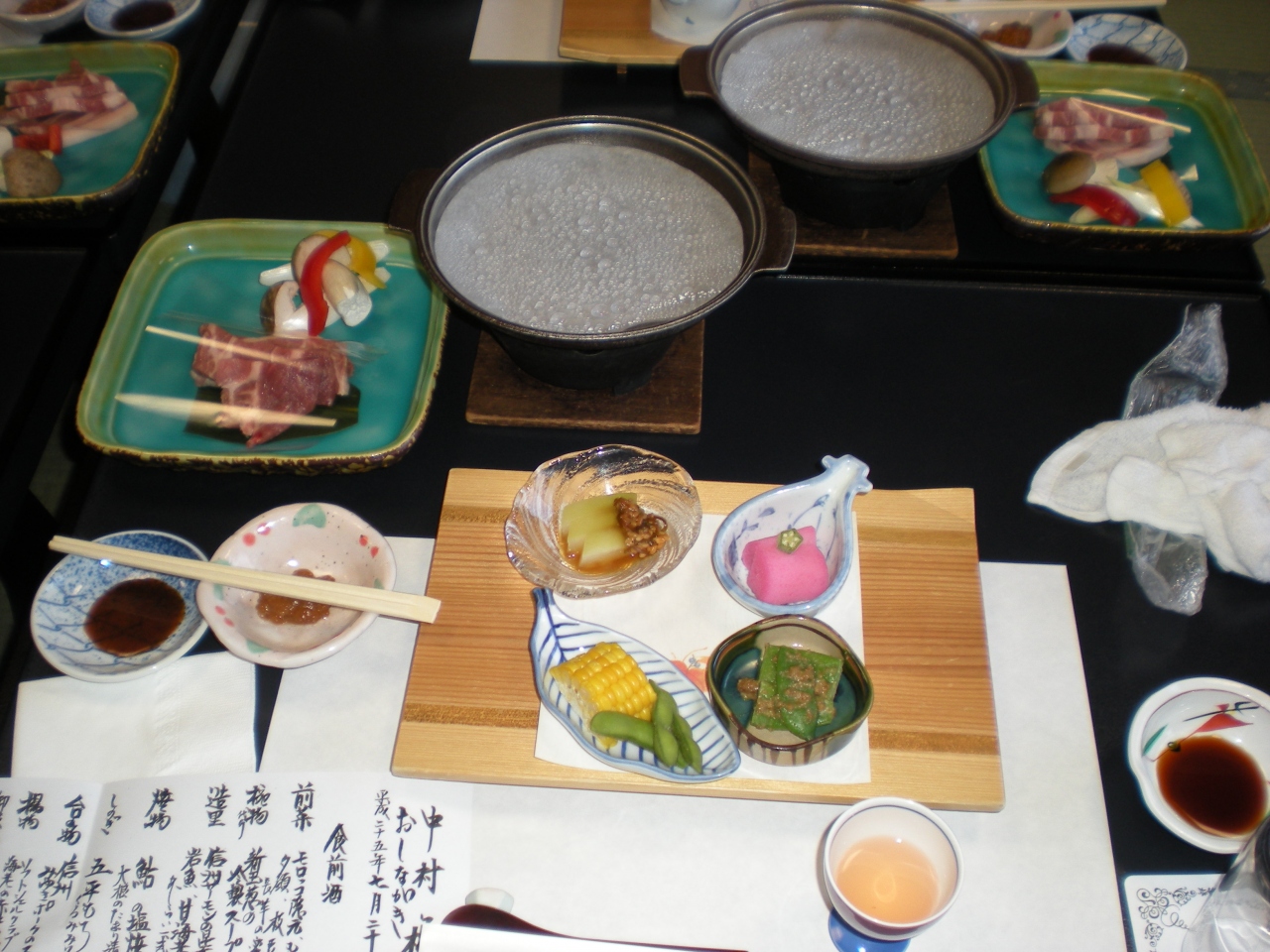 夕食と朝食は別のお部屋で頂きます。山の幸のいろいろなお料理に満足しました♪山の幸も悪くないですね。両親はアユの甘露煮が気に入っていました。