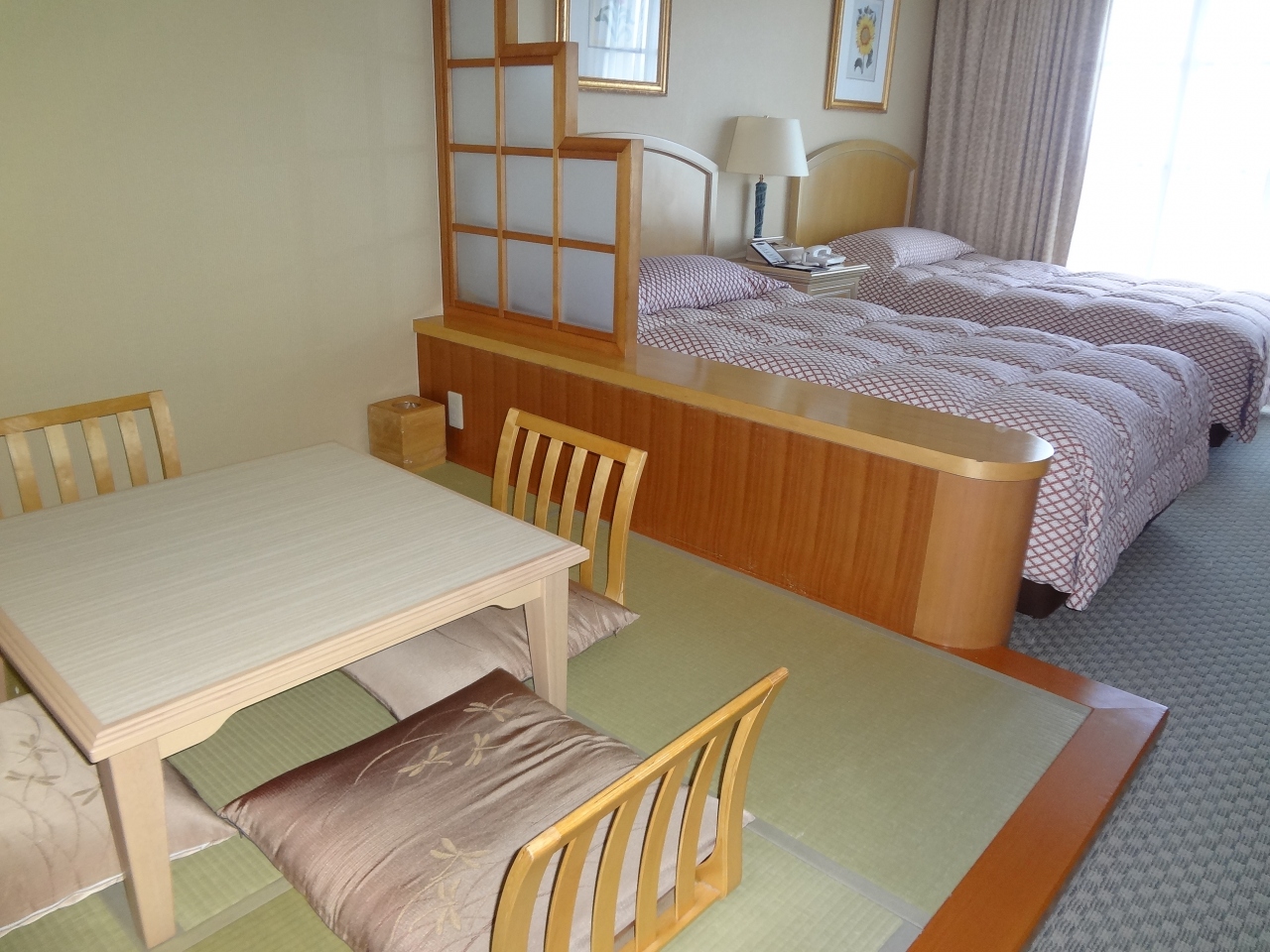 お部屋はスタンダードルームに泊まりましたが、ベッドとは別に畳のスペースもあり、のんびりとできました。