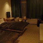 ゴルフ場の中に有ります。テニスコートも有りました。館内から観る景色は緑に囲まれて居て素敵でした。温泉も源泉100%で茶色のモール温泉で湯質は最高です。露天風呂は特に森林浴の感じで素晴らしかったです。ホテルの建物は高く周りの森林に囲まれとても景色の良いホテルでした。夕食はバイキングでしたが地元の素材を生かした美味しい料理でした。最寄駅のJR北広島駅まで無料の送迎バスもありますので札幌駅にも問題なく行けます。ただ森林の中にポツンとホテルが建っているので周りにはコンビニもなく夜は少し静かで真っ暗で寂しい感じです。