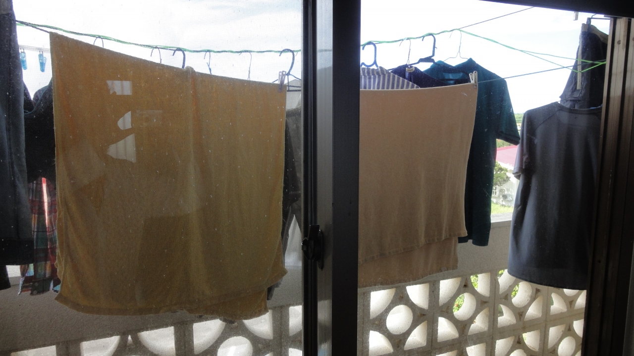 私は洗濯ロープを一本持参して、ハンガーが飛ばされないようにロープを強化しましたが、なんらかの工夫が必要だと思います。