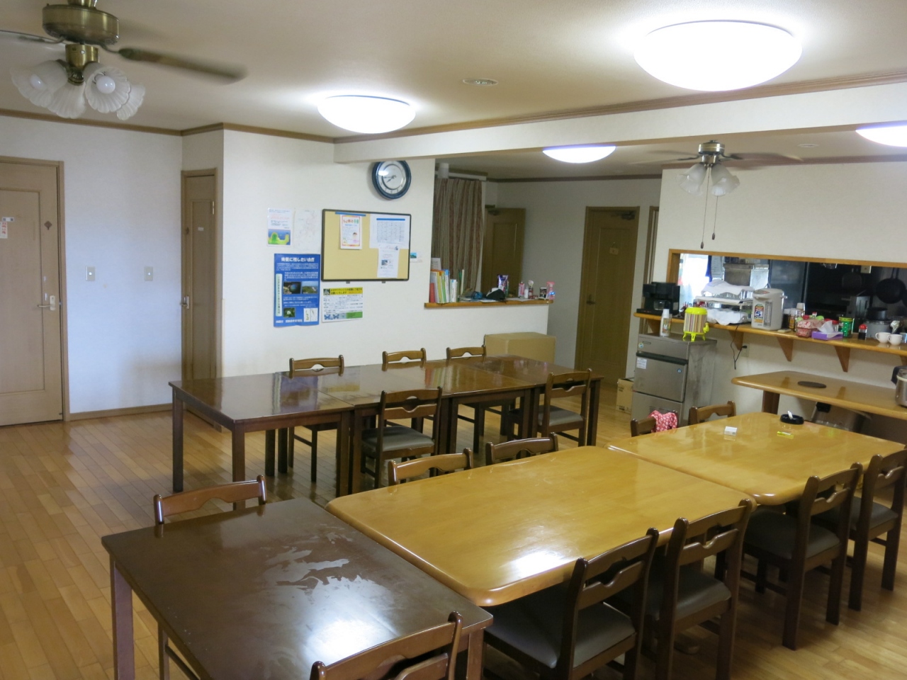 食堂には冷たい麦茶、ポットがあり自由に使えます。