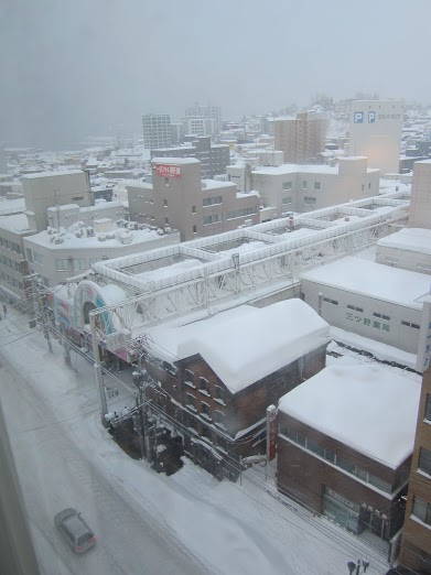 深い雪の中、小樽駅から徒歩で向かいましたがアーケードの中をとおって5分程度で到着。