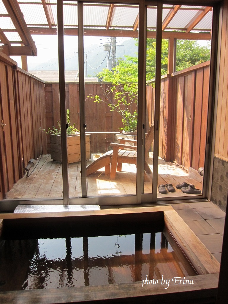 - 全室にユニットバス完備。貸切風呂が3つあり、空いていれば好きな時間帯に入れます。