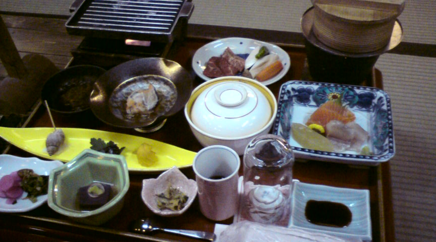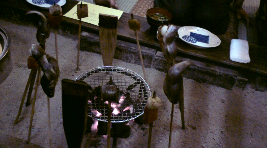 夕食は囲炉裏を囲んで、湯西川の郷土料理や、串焼き、そして豪華なお膳があり、見た目にも、量的にも大変満足でした。