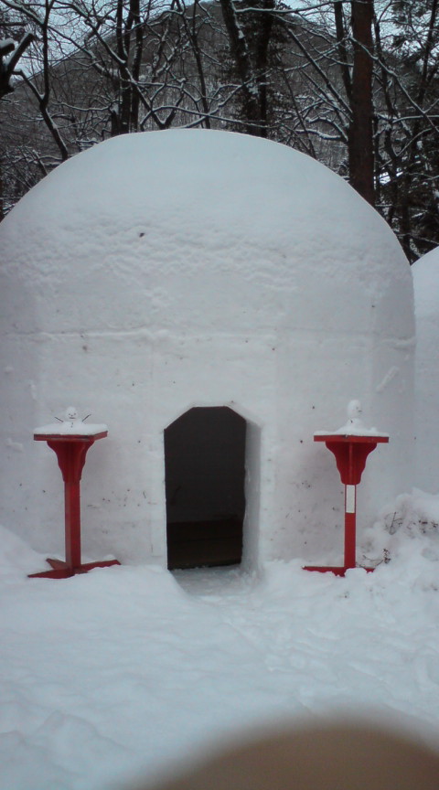 かまくら祭りの時に訪ねたので、ホテルの入口近くにもかまくらがありました。