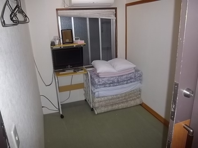 和室の2人部屋は布団を2つ敷くと物が置けない位狭いけど、