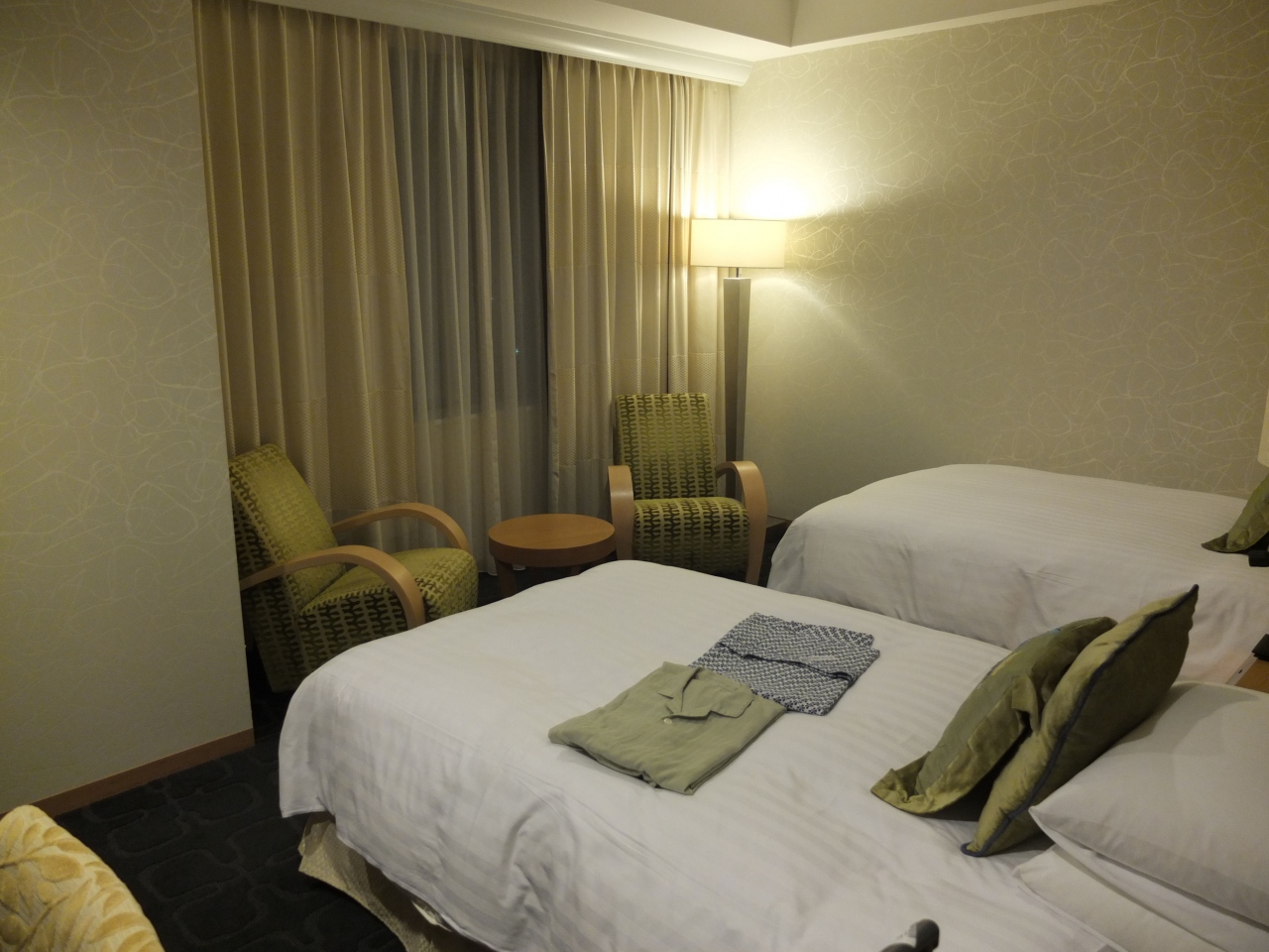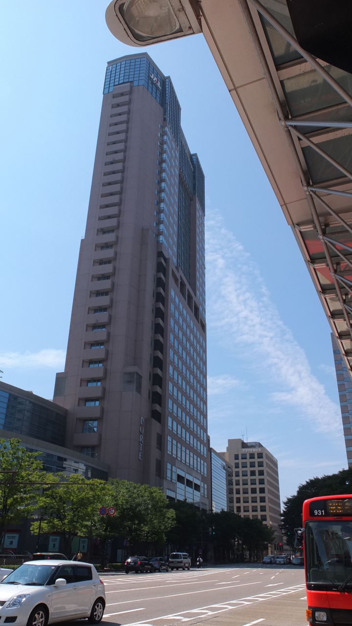 JR金沢駅前に位置します、金沢駅からはANAクラウンプラザホテル金沢の道路向こうに位置するホテル日航金沢は高さ130mで金沢一の高さを誇る高層ホテルです、30階建で客室は28階までですが他に高層ビルがないので眺望は抜群です、ロビーはゆったりくつろげる豪華な作りとなっています、バイキングレストラン「ザ・ガーデンハウス」のバイキング朝食は混雑していて少し待たされた日もありましたが料理の品数も多く各料理の味もそこそこおいしかったです、日本料理「弁慶」でじわもん朝御膳と言う定食を選ぶこともできるそうです、宿泊した部屋のあるフロアーはカードがないと入れない作りとなっていました。