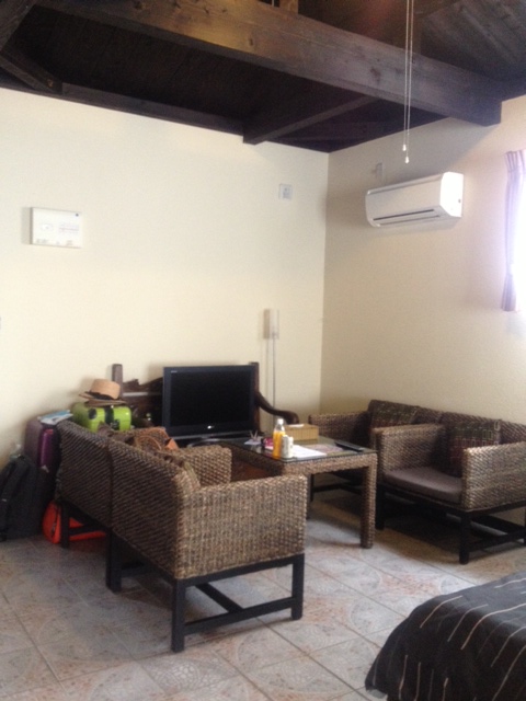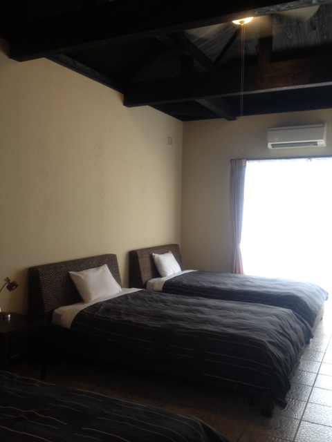 室内はベッドや家具や梁が見えている天井の感じも良かったです。内装も素敵ですし、床のタイルもセンス良いです!!!