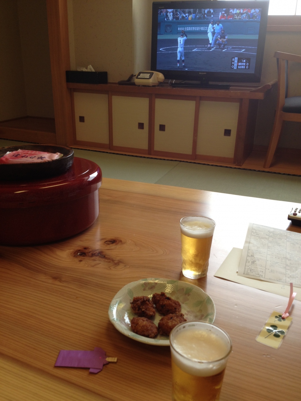 サービス券で頂いたすり身揚げをつまみに甲子園を見ながら一杯
